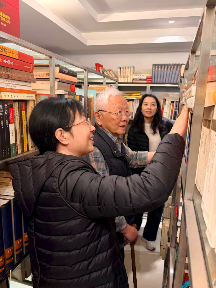 刘吉先生已经90周岁高龄,对学所同志们的到来感到非常高兴,他回忆了建所初期的一些故事,也介绍了个人近期从事的一些工作。同时,还兴致勃勃地带领大家参观了家中各类藏书。他指出,作为科技工作者,要深耕专业、拓宽视野,掌握跨领域技术,从各类书籍中汲取养分,打破学科壁垒,培养多元思考能力,才能更好地为上海科技创新贡献力量。